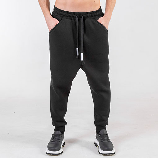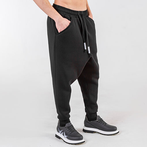 Unisex sweat pants with pockets on the sides & ribbed cuffs. Decorated with massive drawstrings with aluminium caps.
