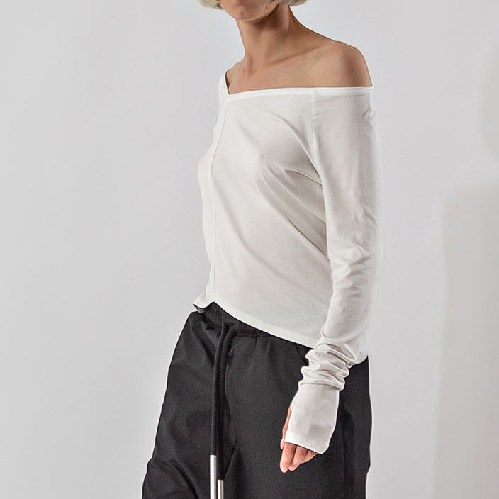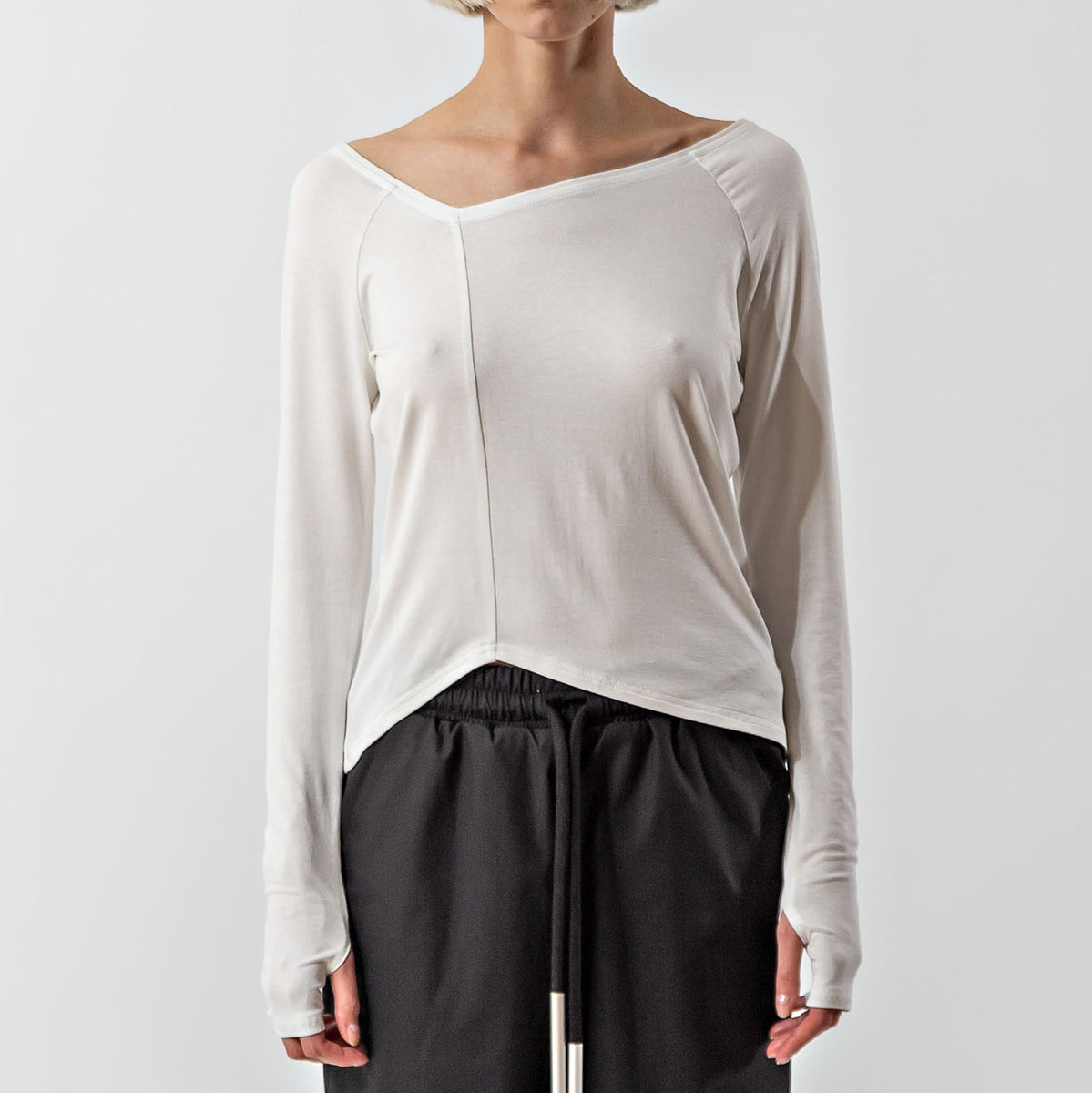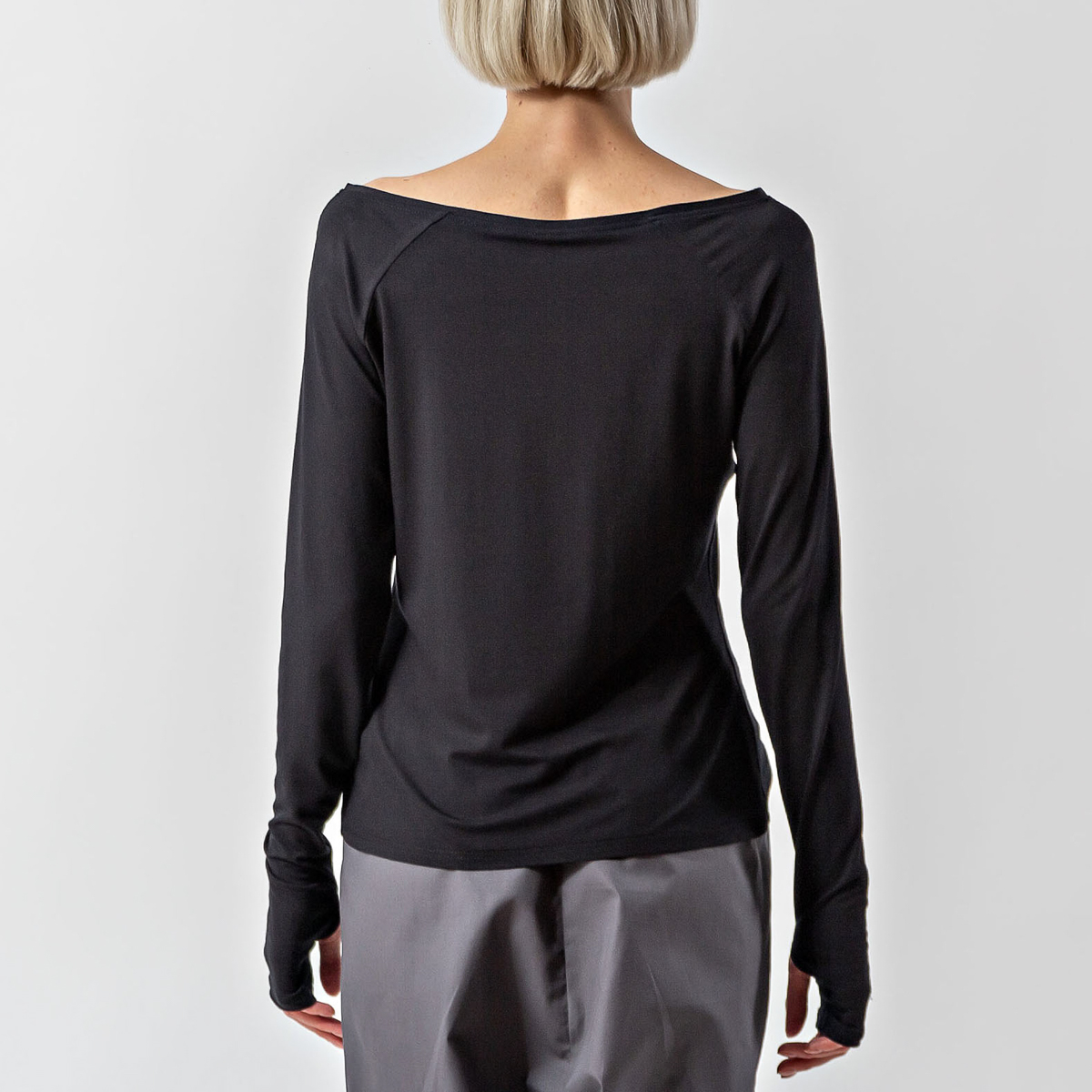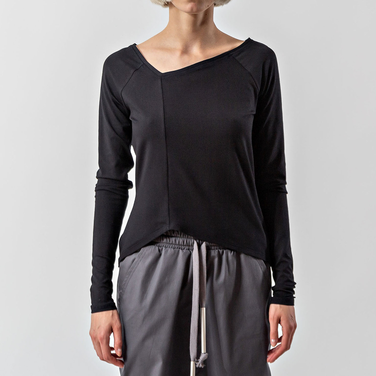 Asymmetric v-neck longsleeve. Material: 100% viscose