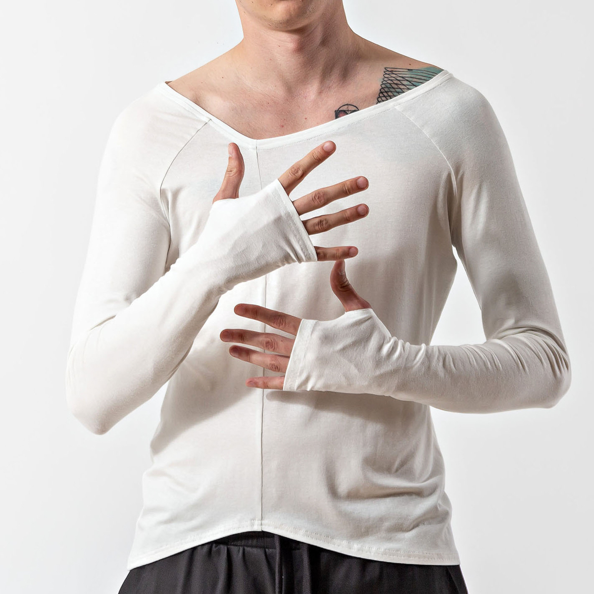 Asymmetric unisex v-neck longsleeve. Material: 100% viscose