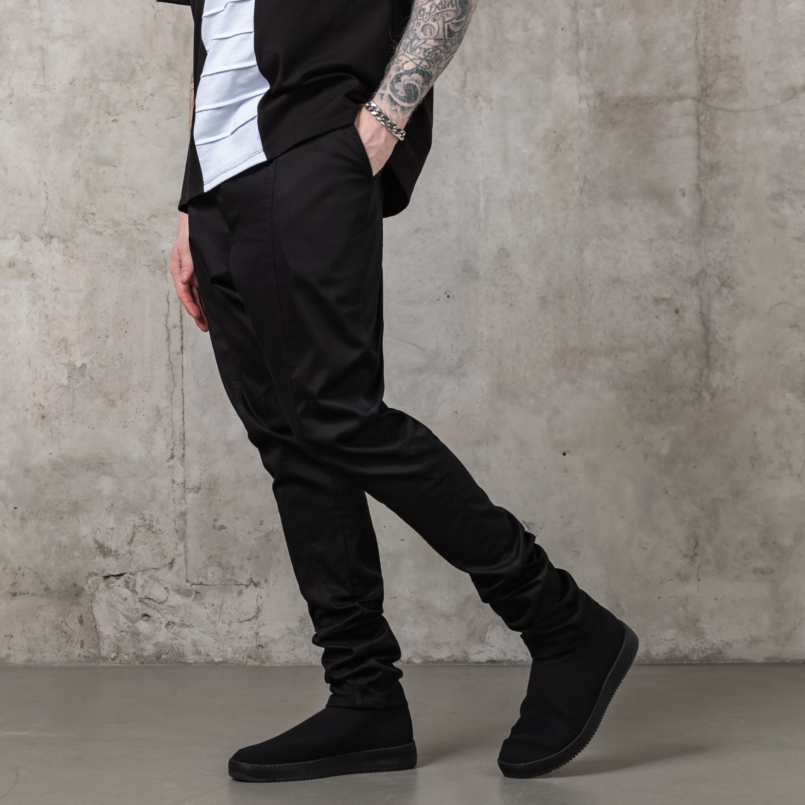 Narrow zipper trousers with sculptural seams & pocket on the back. Unisex. Material: stretchy 90% cotton 10% pa. Zipper YKK.