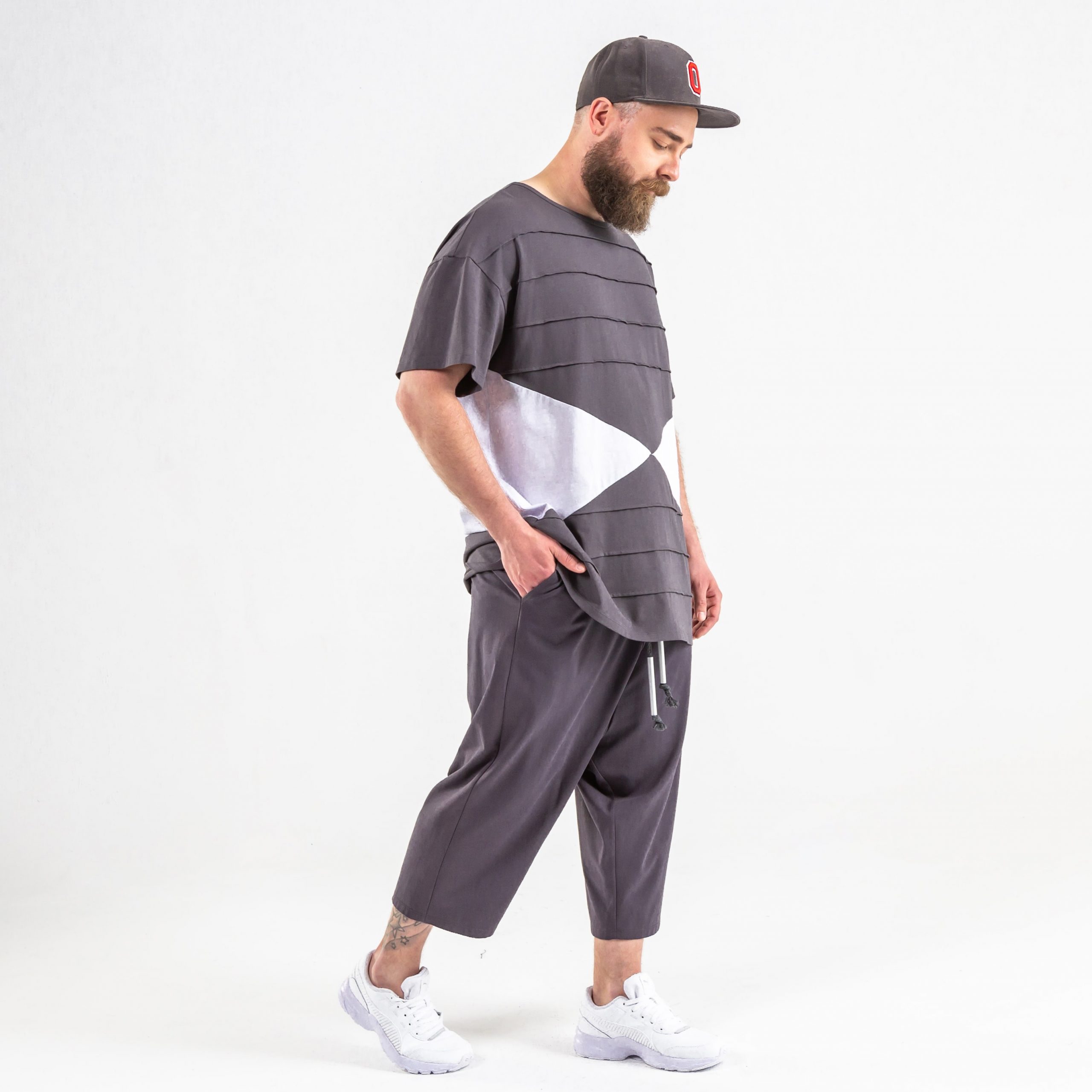 Unisex drawstring cropped sweat pants in thin jersey. Material: 98% cotton 2% elastan