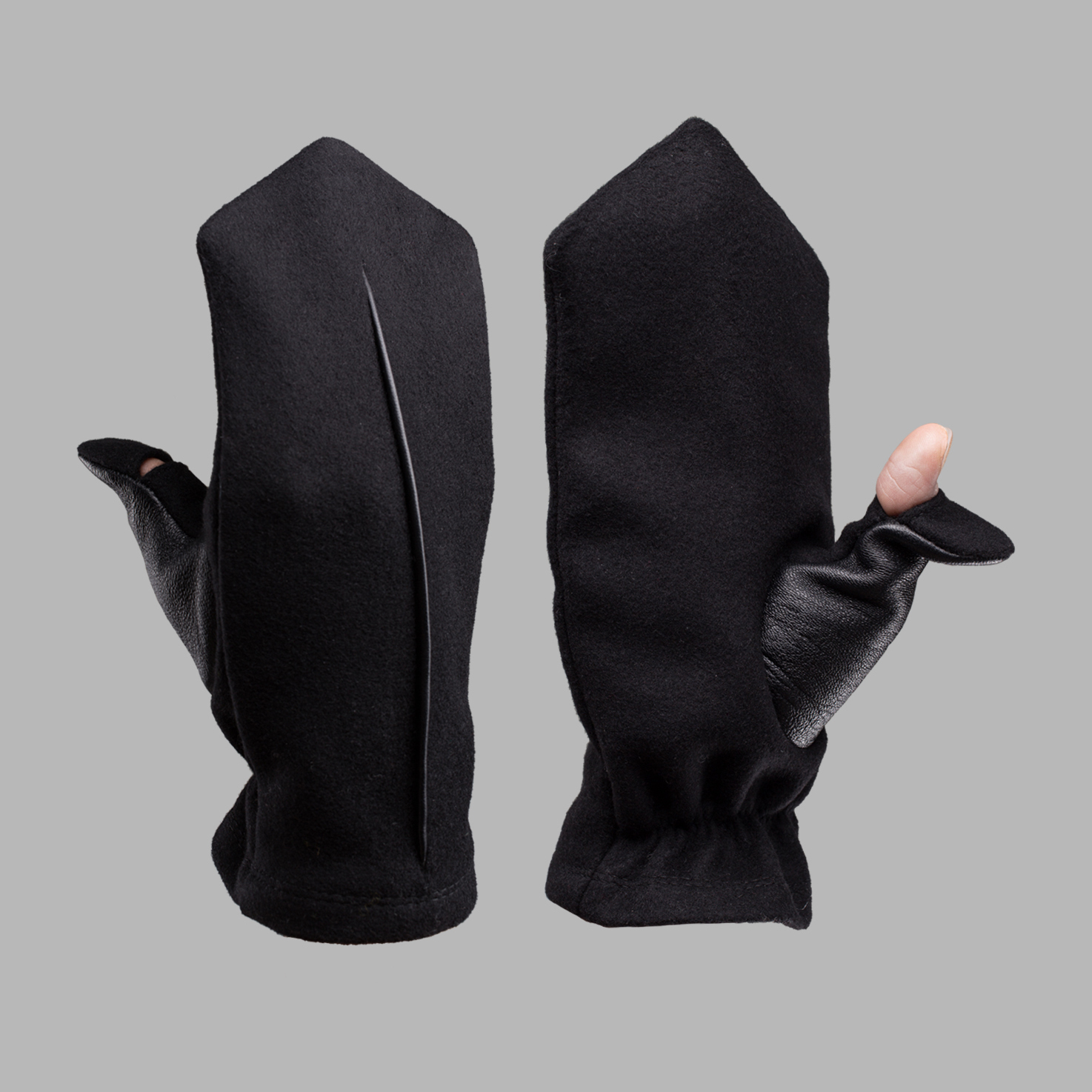 - Leather insert on the front side & leather thumbs cut on the inner side for comfortable use of smartphones