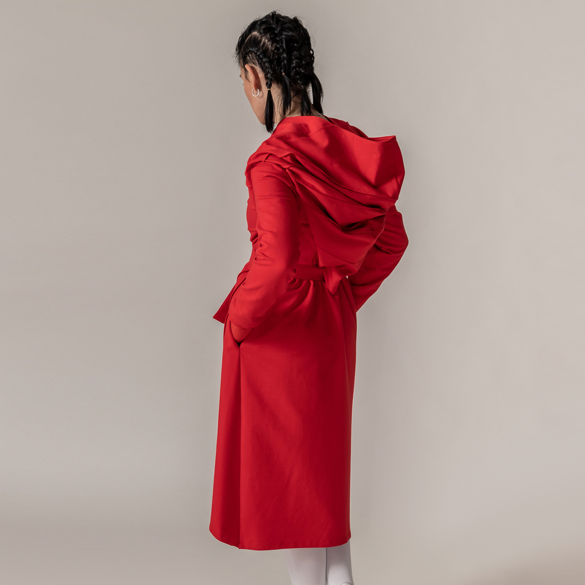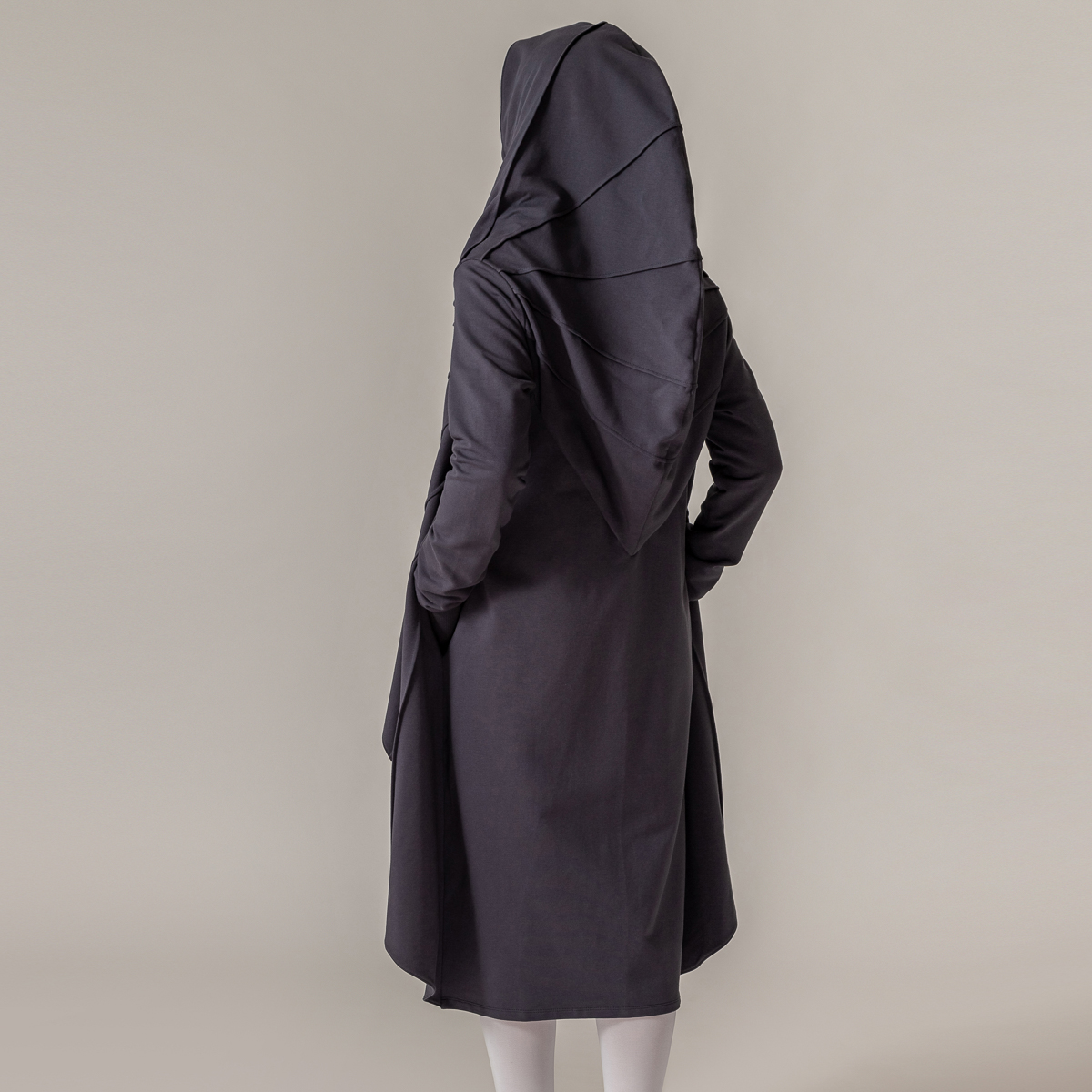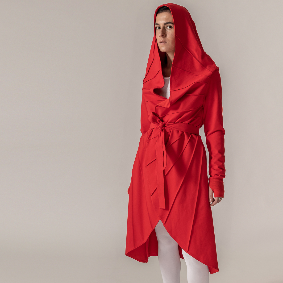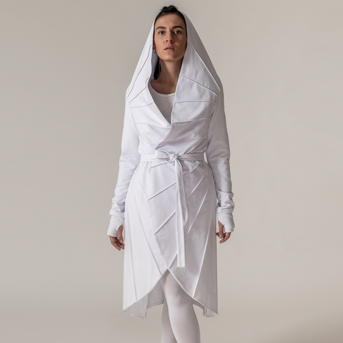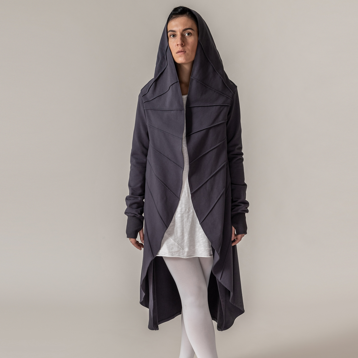 Об’ємний кардиган за концептом дракону з поясом і текстурним капюшоном.