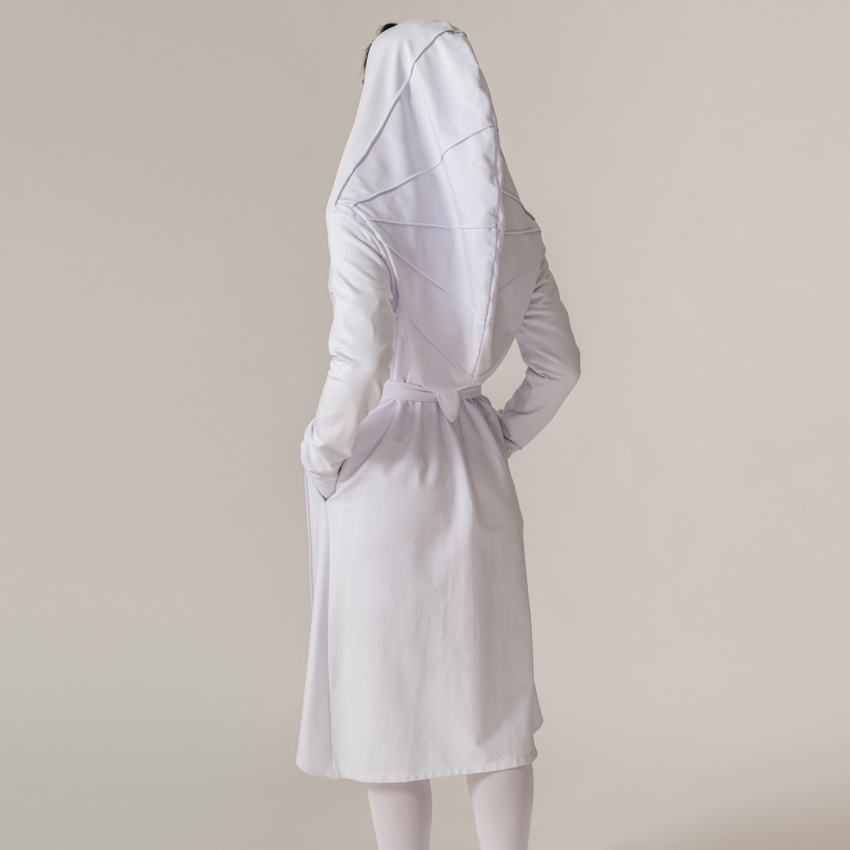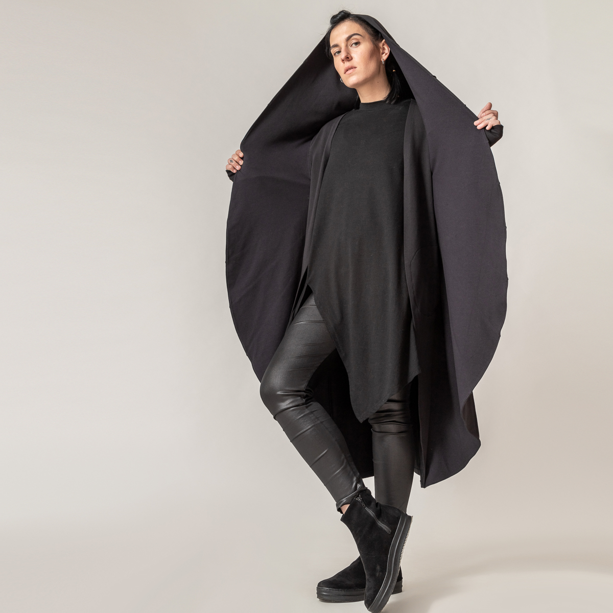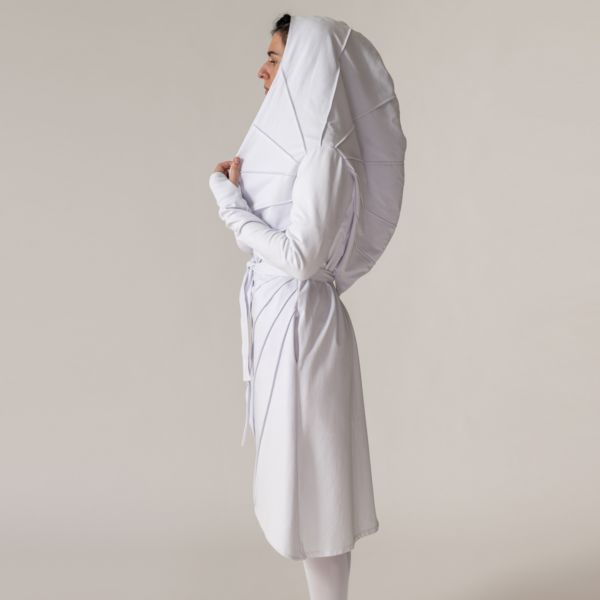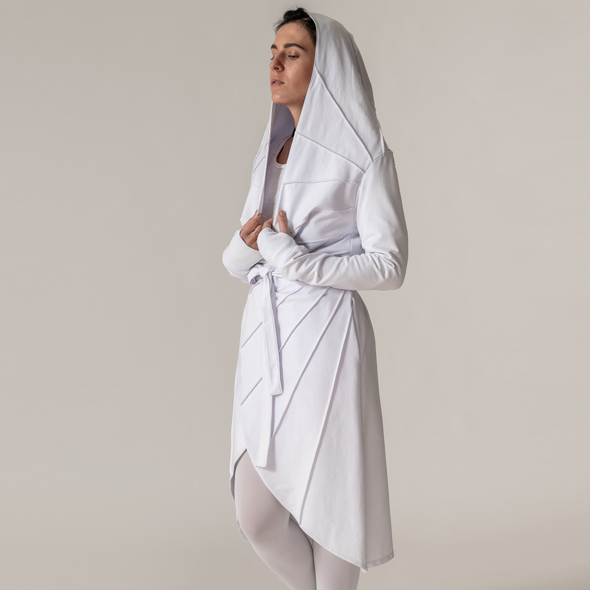 Об’ємний кардиган за концептом дракону з поясом і текстурним капюшоном.