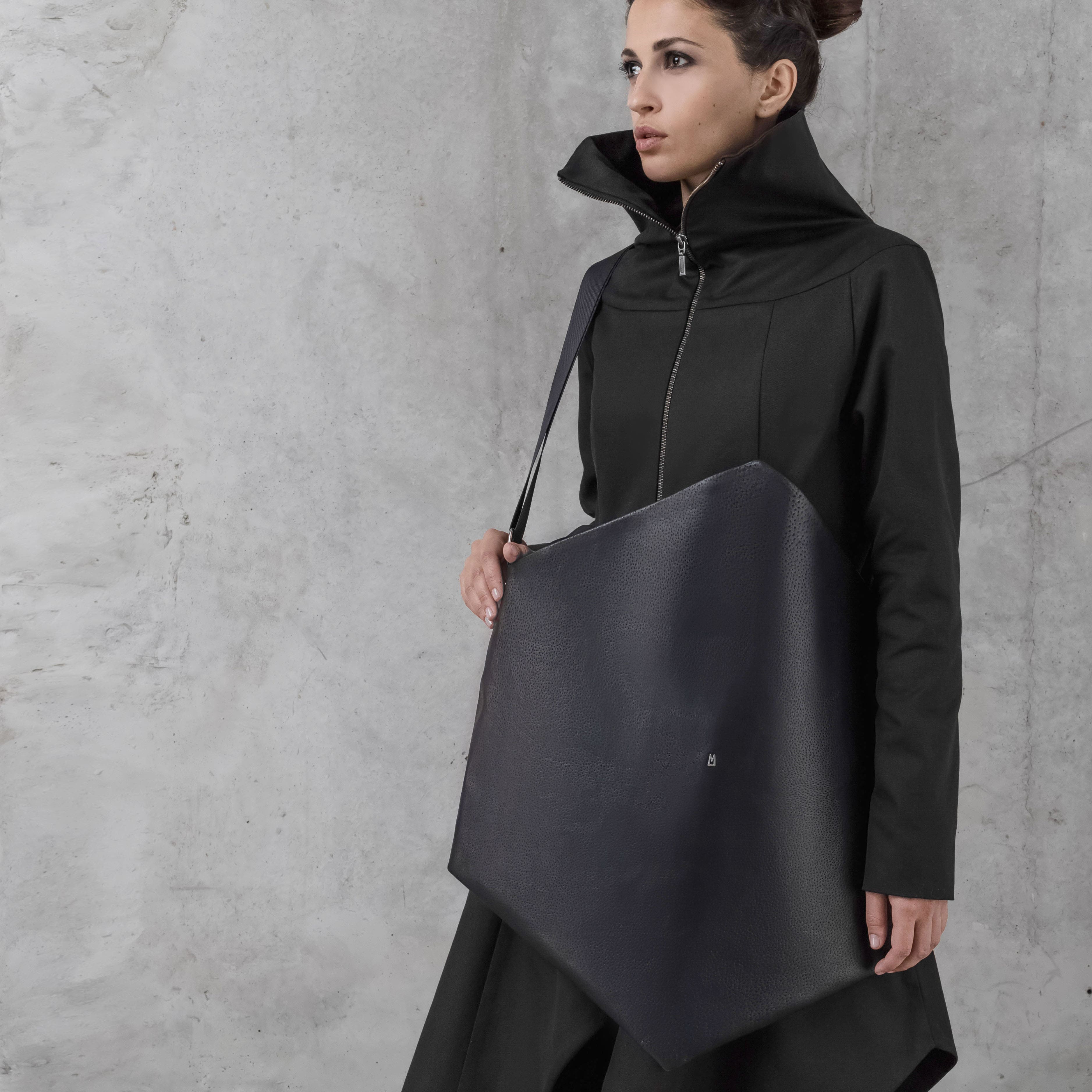 Hexagon Shopper in pig leather with cotton lining & silver emblem