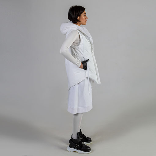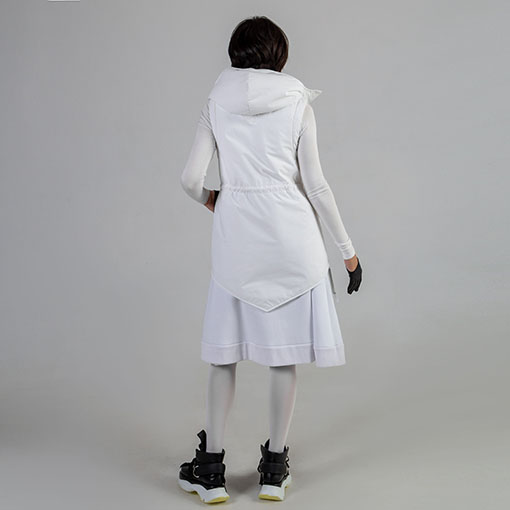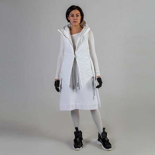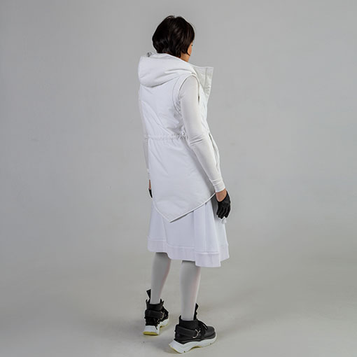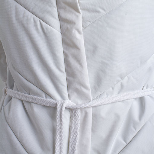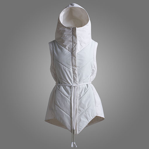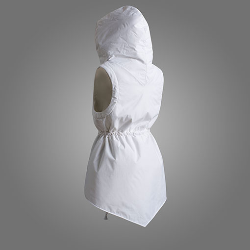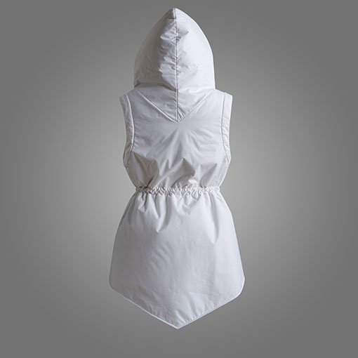 Findings: double-sided metal zipper, drawstrings, aluminum caps