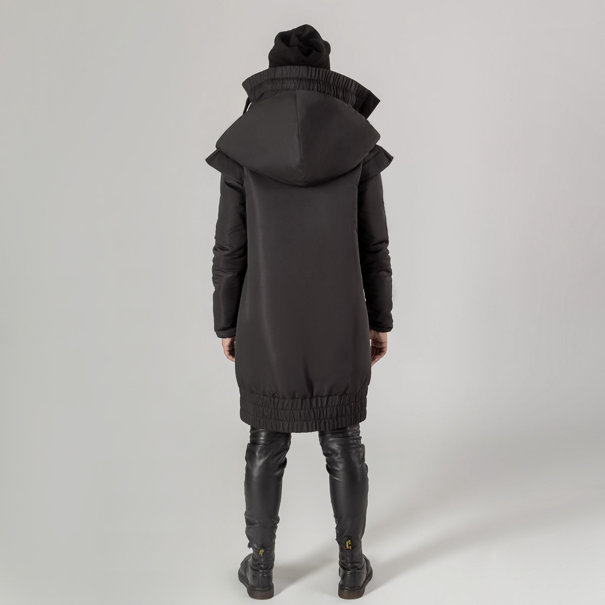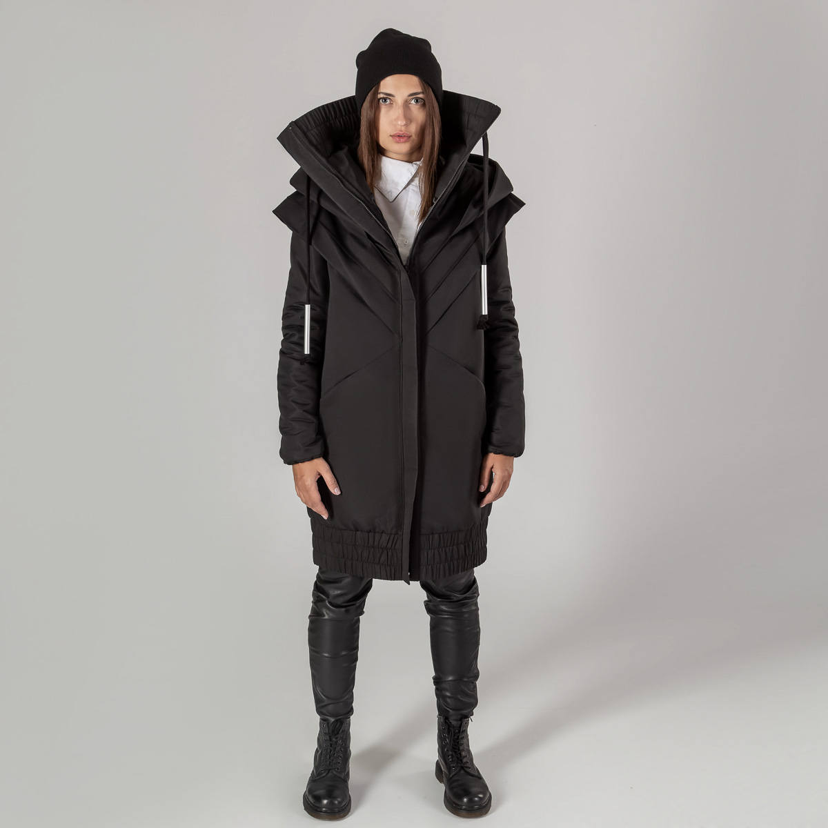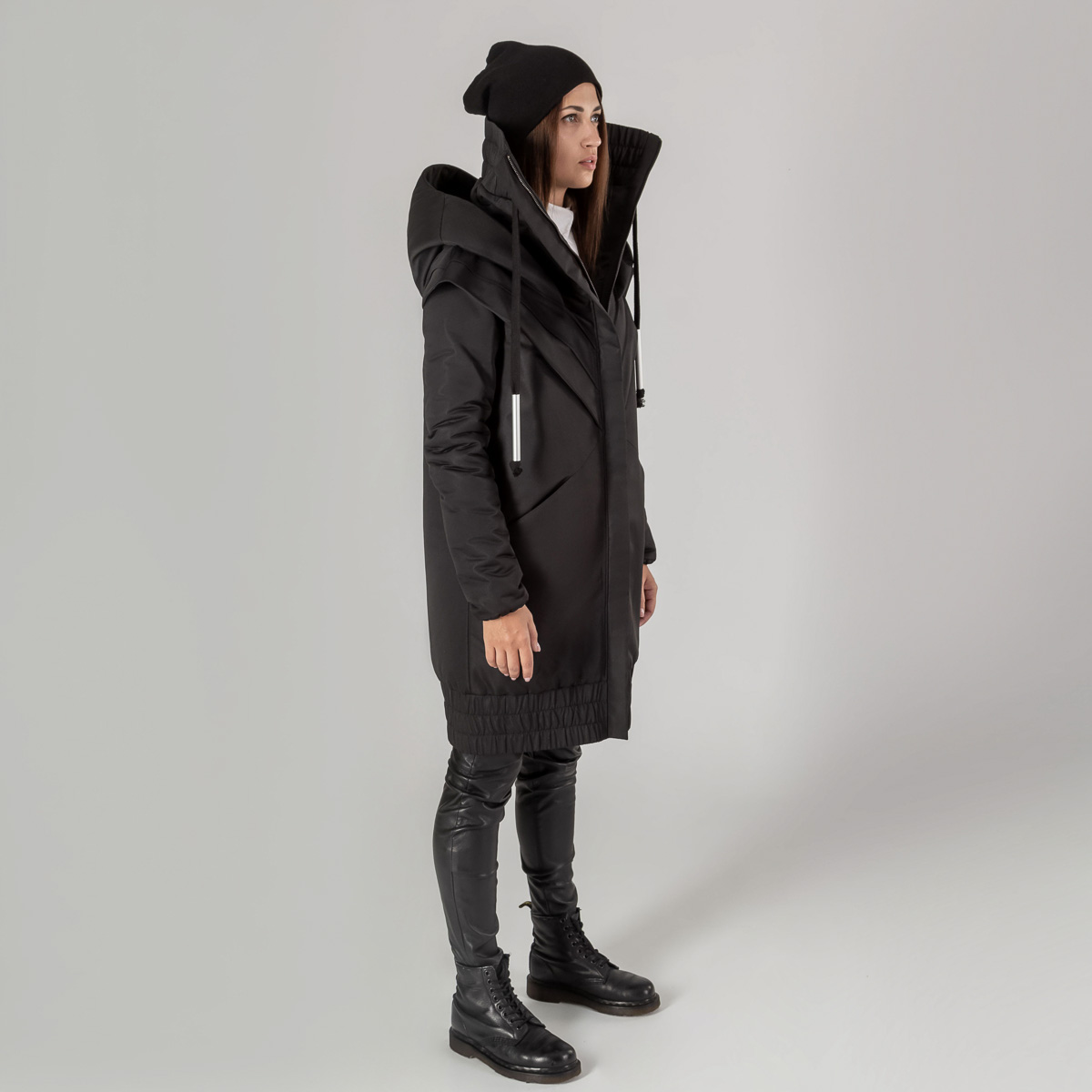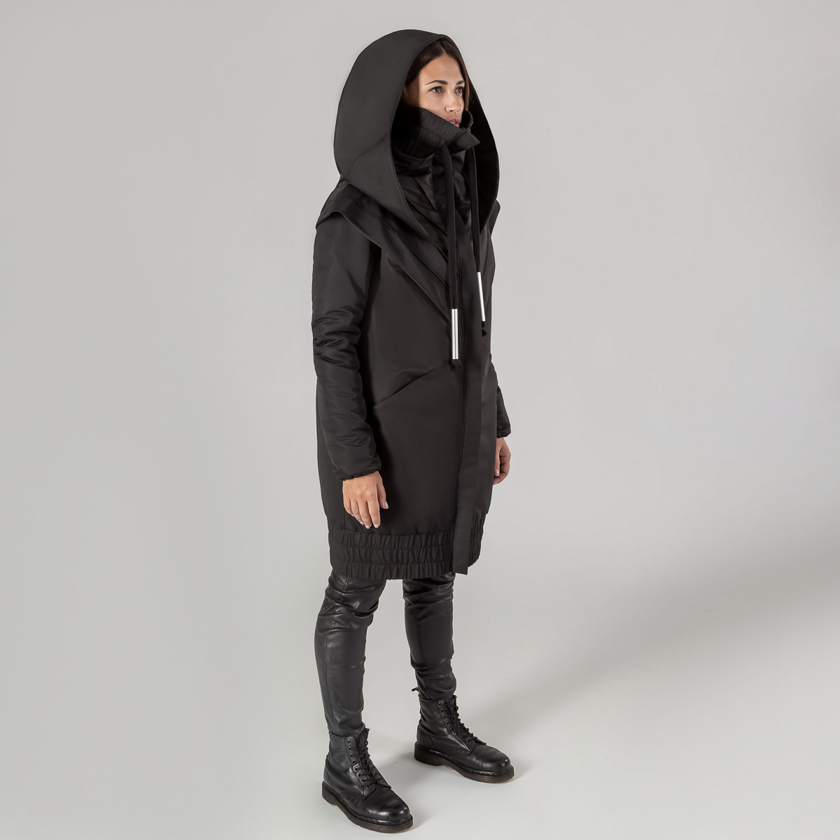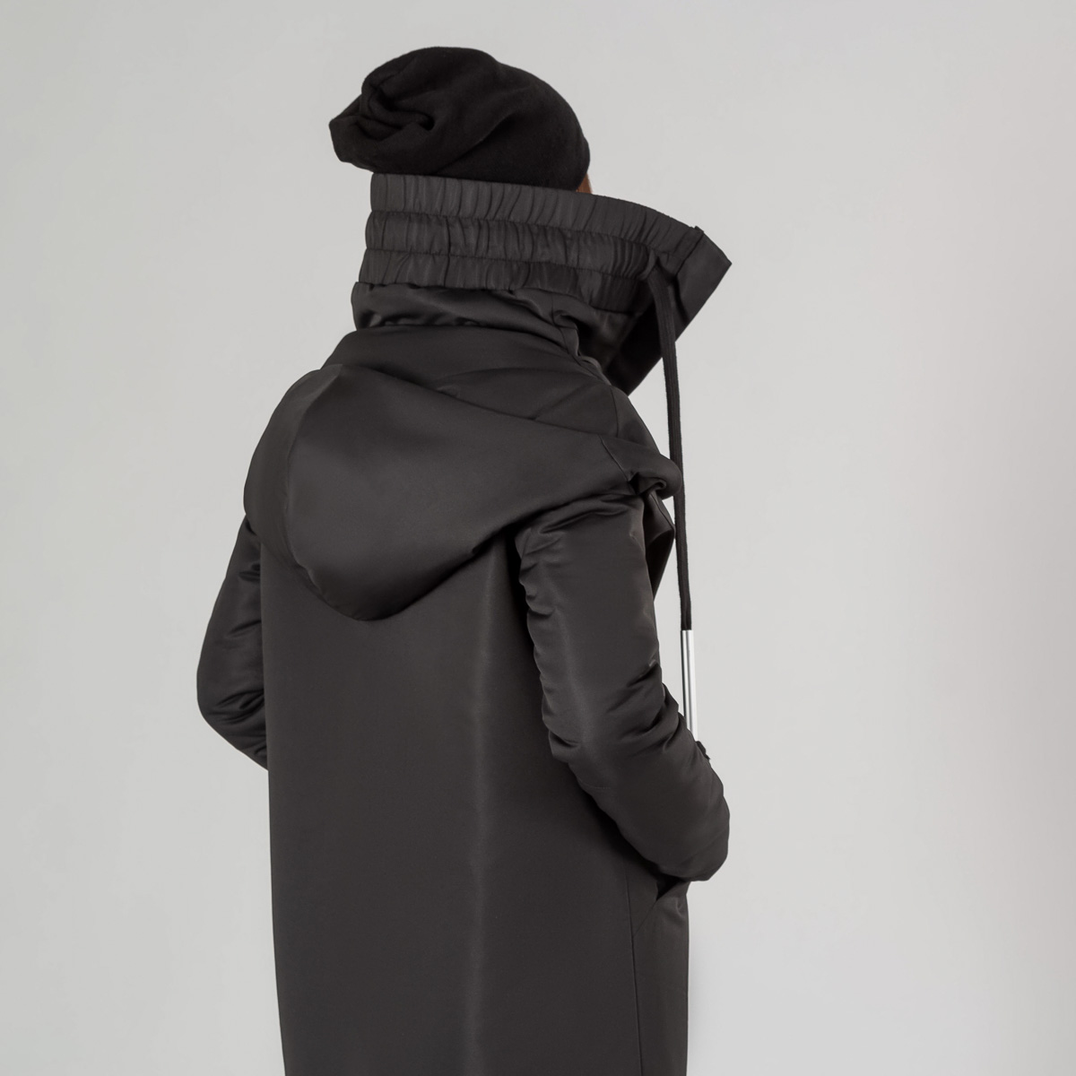 Findings: double-sided metal zipper, drawstrings, aluminum caps