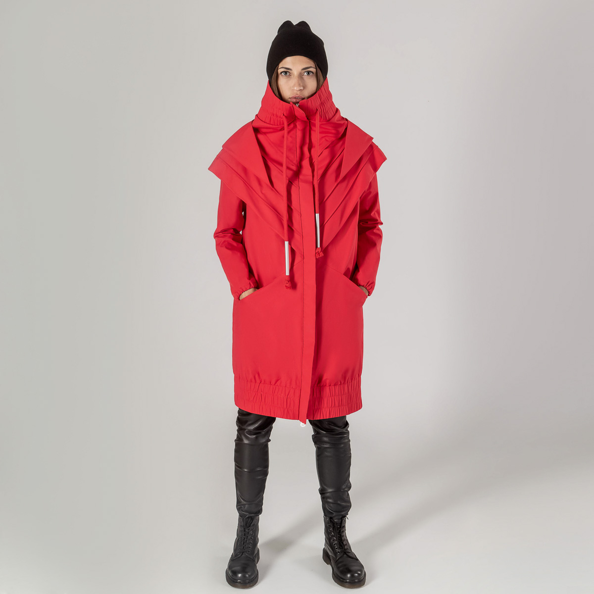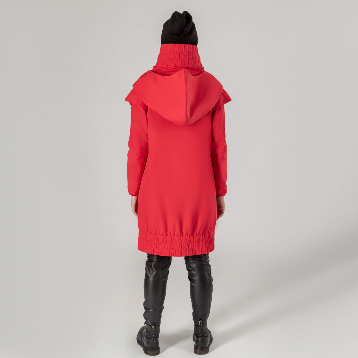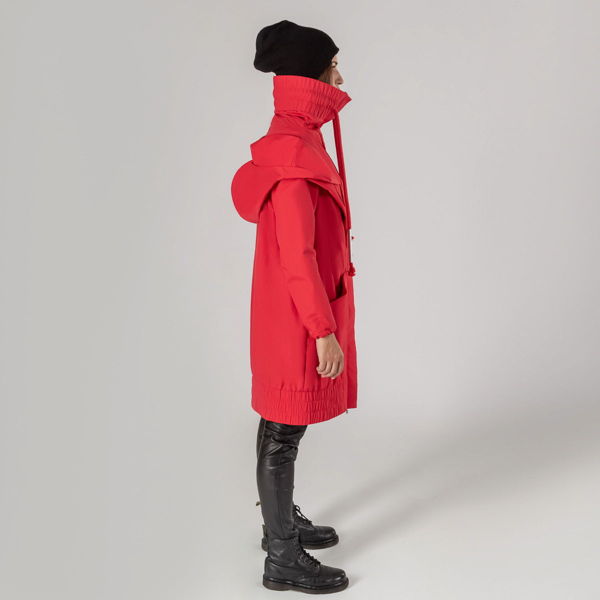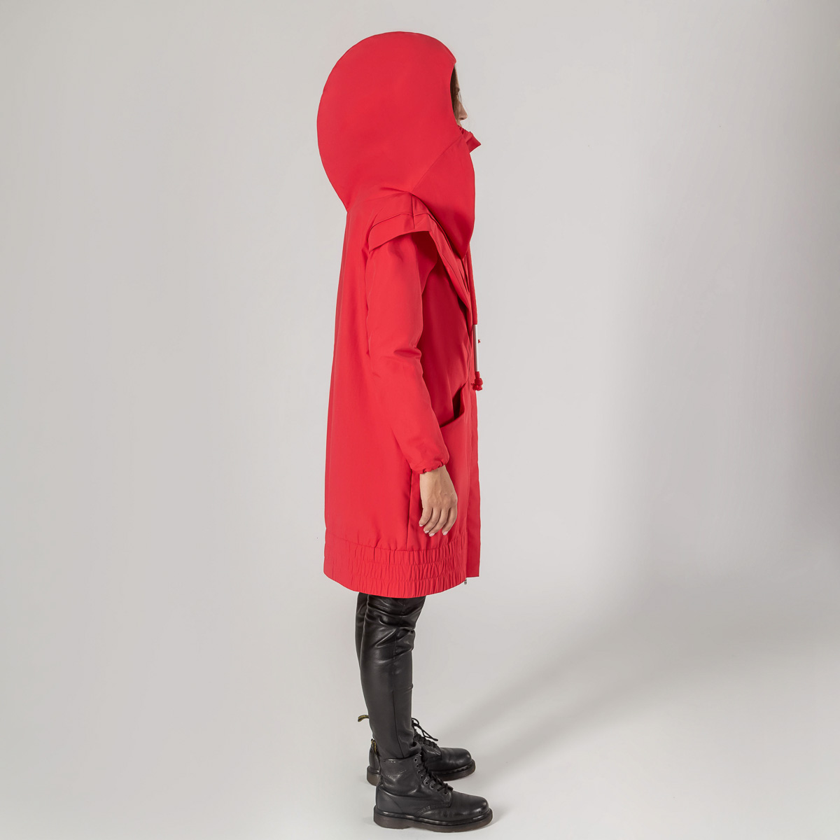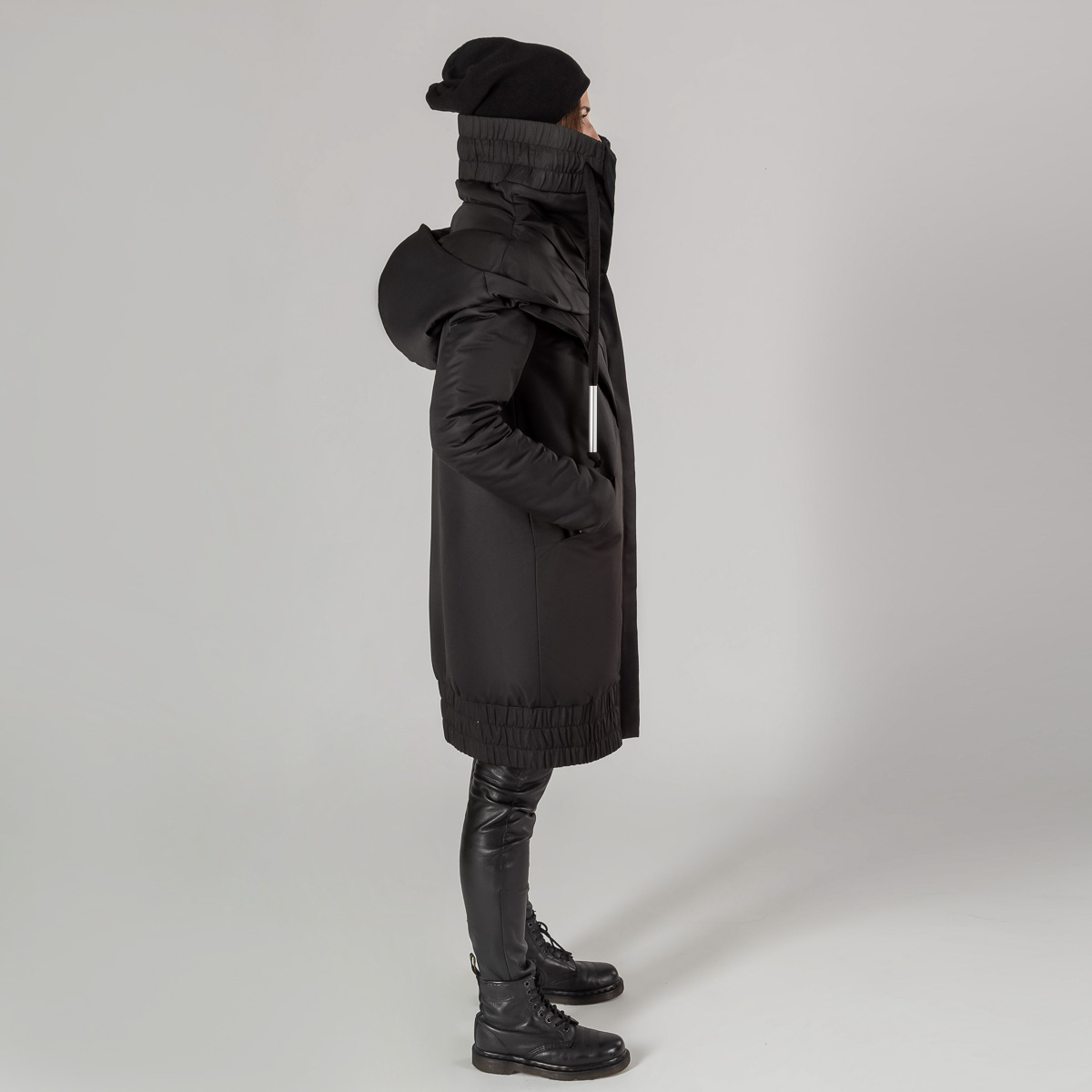 Findings: double-sided metal zipper, drawstrings, aluminum caps