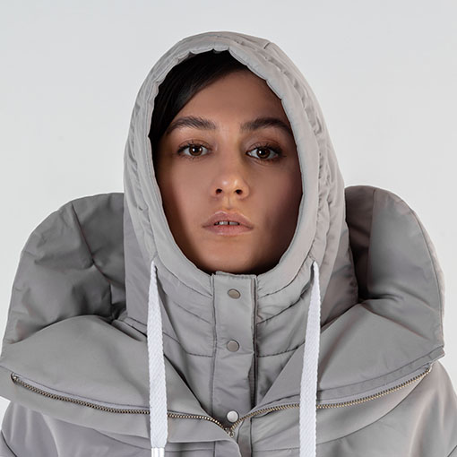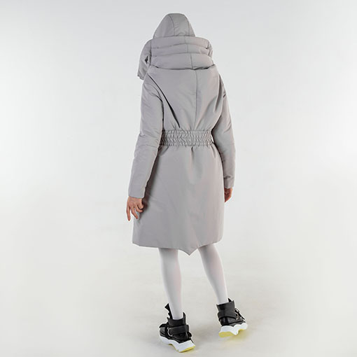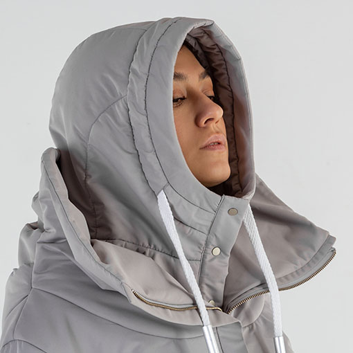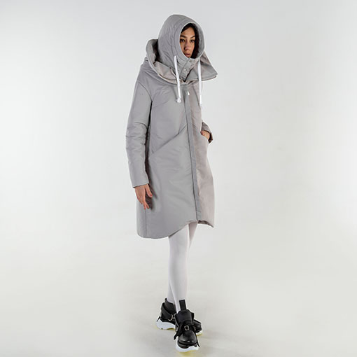 Monochrome Rainbow #9 Coat made after Armadillo concept. Decorated with three folds on the back accompanied by fitting underhood.